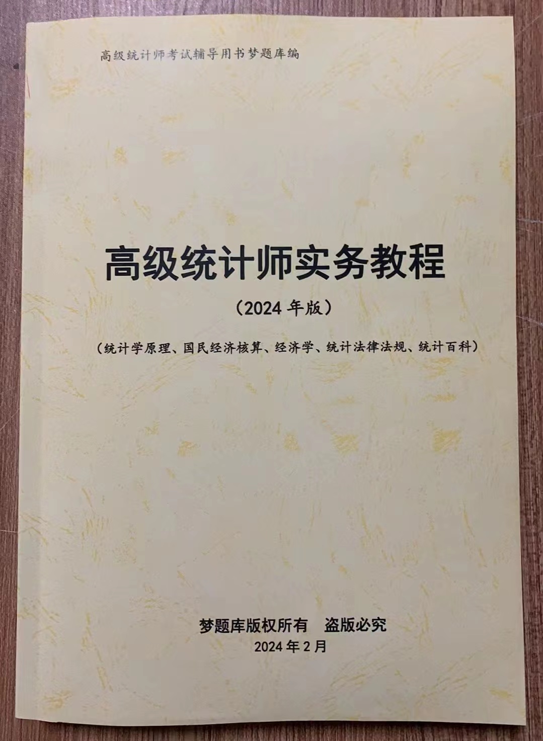 各位学员,2024年高级统计师考试梦题库有如下三本纸质资料,基本涵盖高级统计师考试知识点。考试前还有一本新增备考资料,需要学员自行打印(限网授班)。