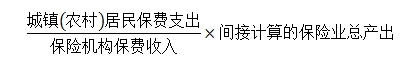 居民保险服务消费与银行中介服务消费的计算一样,也包括居民实际支付的手续费和间接计算的保险服务消费支出两部分,间接计算的保险服务消费支出利用城乡居民保险费支出占全部保费收入的比例分劈间接计算的保险业总产出求得。即: