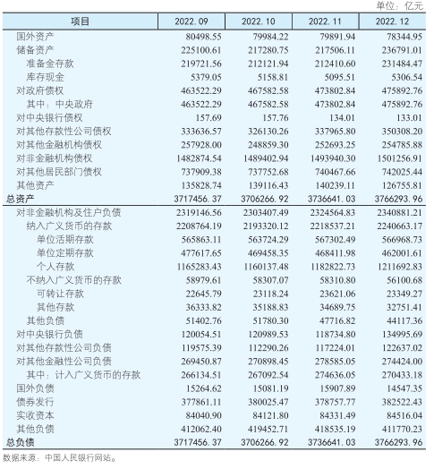 其他存款性公司资产负债表根据银行、农村信用合作社(含联社)和企业集团财务公司等机构的资产负债表数据编制而成。其他存款性公司资产负债表显示了其他存款性公司的国外资产、国内债权构成以及国外负债、国内负债构成等数据,反映了其他存款性公司与国外、政府、非其他存款性公司的债权债务关系。其他存款性公司资产负债表如表2所示。