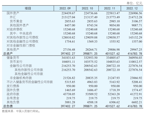 货币当局资产负债表主要以金融机构资产负债统计指标为基础,汇总人民银行和外汇管理局的部分数据编制而成。货币当局资产负债表显示了中国人民银行的国外资产、国内信贷以及储备货币构成等数据,不仅反映了中国人民银行与国外、政府、非金融机构的债权债务关系,也反映了与其他存款性公司的债权债务关系。货币当局资产负债表如表1所示:
