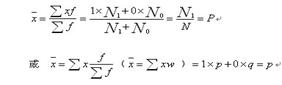 是非标志是品质标志,要计算其平均数首先需要将是非标志的两种表现进行量化处理。用“1”表示具有某种表现的标志值,用“0”表示不具有某种表现的标志值,然后以“1”和“0”作为变量值计算加权算术平均数如下。
