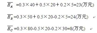 (1)计算三个方案的收益期望值: