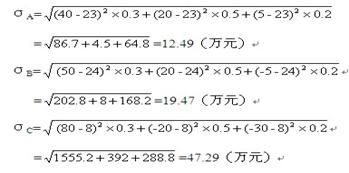 (2)计算三个方案的收益期望值的标准离差: