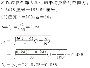 【分析与提示】题目中的两个要求,一个是样本平均数的问题,另一个是样本成数问题。