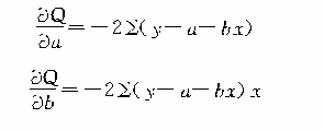 则上述问题化为二元函数的极值问题。即确定适当的a、b使二元函数Q达到极小值。根据多元函数微分学原理,则有以下推导: