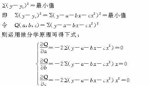 设二次曲线方程为:yc=a+bx+cx