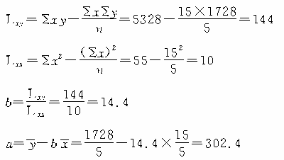 所以yc=302.4+14.4x为所求