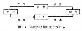从运动形态上区分,“生产——流通——使用”这一过程属于国民经济的“实物运动”。因为在这里,社会产品的价值是与其使用价值一起运动的:若商品售出则货币流入,若商品购人则货币流出。也就是说,伴随着实物(货物和服务)流通还存在着货币流通,两者相辅相成,但运动方向相反,另一方面,“生产——分配——使用”这一过程则属于国民经济的“价值运动”,在这里,社会产品的价值已经与具体的使用价值相对分离。两种运动在脱离生产过程之时相分离,又在进入使用过程之时相汇合,既对立又统一,为我们考察国民经济循环过程提供了两条基本线索。
