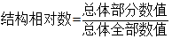 结构相对指标是总体中部分数值与总体全部数值相对比的比值。它表明构成总体的各个部分在总体中所占的比重,用来反映总体的内部结构,一般用百分数表示。结构相对指标的一个重要特点是,同一总体的各部分比重之和等于100%。其计算公式为