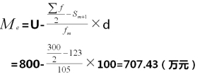 (3) 由组距数列确定中位数。首先用公式