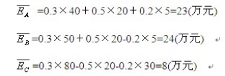 【例题10】某企业准备投资开发甲新产品,现有A、B、C三个方案可供选择,经预测A、B、C三个方案的预期收益及概率如下表如示: