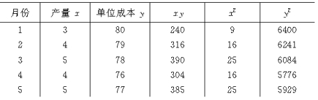 由于产量是给定的数值,即产量是自变量设为x单位成本是被估计的因变量设为y,列计算表如下: