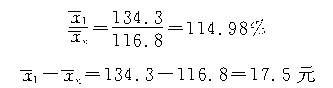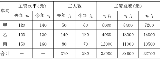 计算结果表明,消除各组工人平均工资水平变动的影响,单纯由各组工人结构的变动影响使今年的平均工资比去年下降了1.43%,平均每人的工资减少了1.7元。