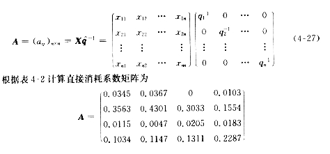 在进行投入产出分析时,将所有直接消耗系数用矩阵表示显然是很方便的。