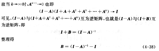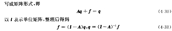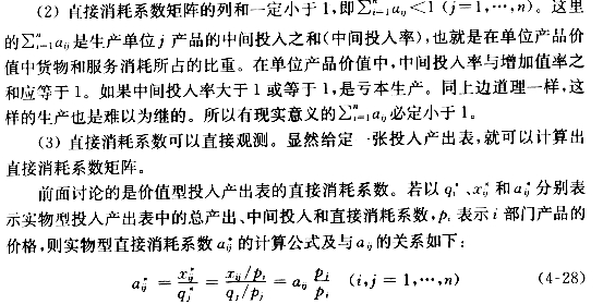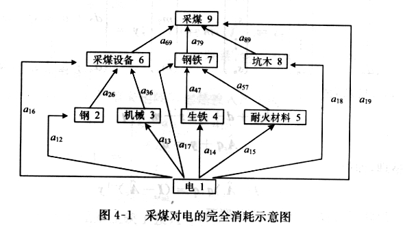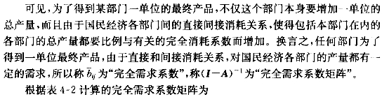图4-1揭示了各生产部门的直接和全部消耗关系,给我们一个启示:虽然完全消耗系数bij不能按定义求出,但是它与一系列直接消耗系数有关,一种产品生产对某种产品的间接消耗可以用一系列的直接消耗表示,因此可以通过一系列直接消耗系数来求全消耗系数。