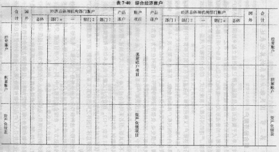 相对于单式平衡表而言,依据复式簿记规则建立起来的国民经济账户体系的优越性是显而易见的。然而,诚如SNA的主要设计者之一理查德·斯通所指出过的:“国民账户的普通形式……有两点不足:一是每个项目都必须记下两次,二是只要不是在既小且简单的系统中,就难以立即找到其内部联系。”为此,还需要一种更为简捷、严谨的国民账户表现形式。综合经济账户就是一种较好的核算和描述形式。