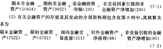 (1)有关非金融资产的存量及其变动的全部资料都包含在第7列中,其核算关系为