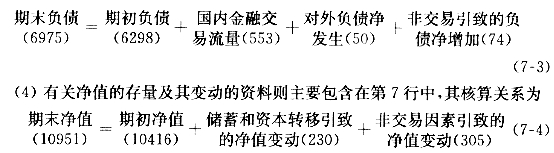 有关金融负债的存量及其变动的全部资料都包含在第8行中,其核算关系为