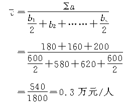 (1)时间间隔相等时,按“首末折半法”计算,公式如下: