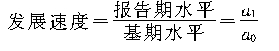 (一)发展速度。发展速度是以相对数形式表示的动态指标,是报告期水平与基期水平的比率。即: