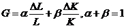 假如不存在生产要素效率的提高,经济增长完全依靠生产要素投入数量的增加,即在粗放型增长的条件下,经济增长率的高低就完全取决于生产要素增长率即劳动增长率和资本增长率的高低,于是就有下列方程式: