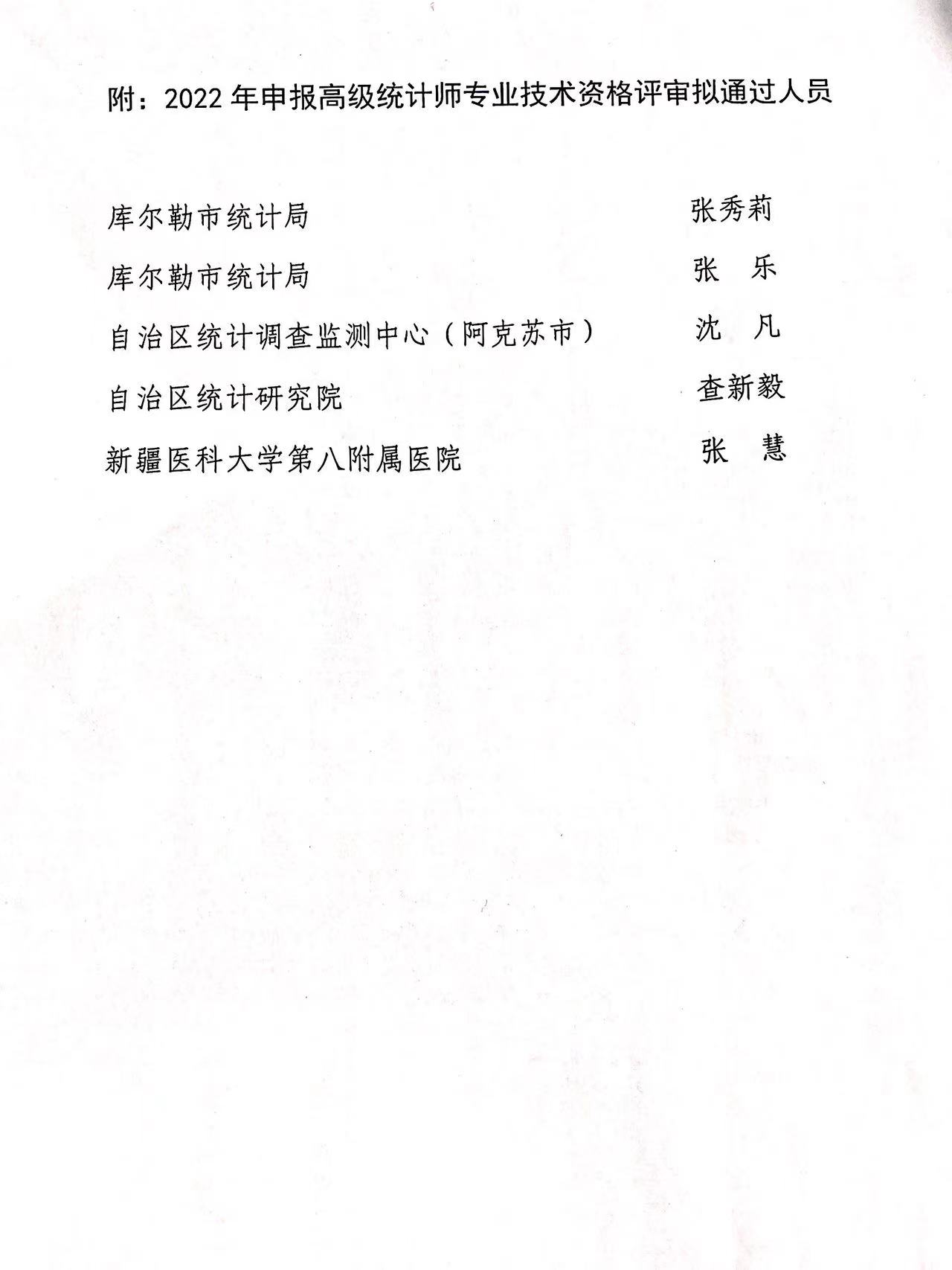 2022年新疆高级统计师评审拟通过人员公示